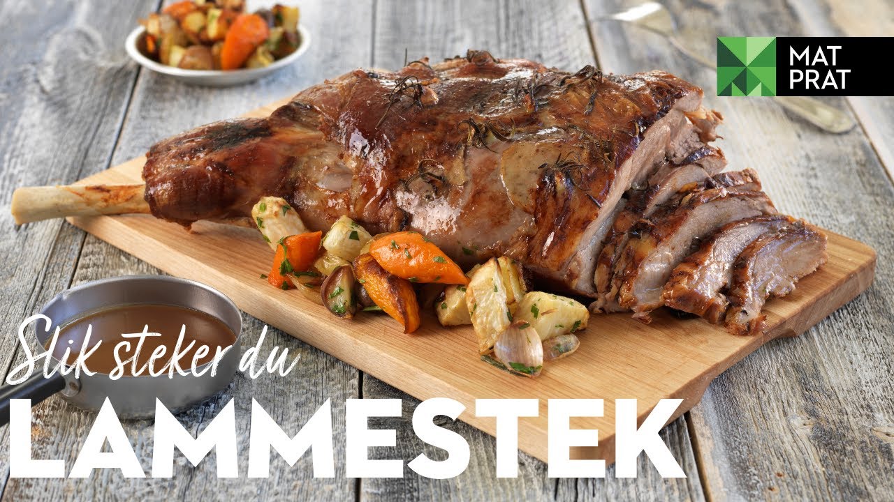 Klassisk lammestek er typisk servering i forbindelse med påske og i lammesesongen om høsten, men gjerne ellers i året også. Bruker du litt tid på å skjære ut isbeinet på lammelåret før steking, så får du en lammestek som er enklere å skjære i fine skiver.